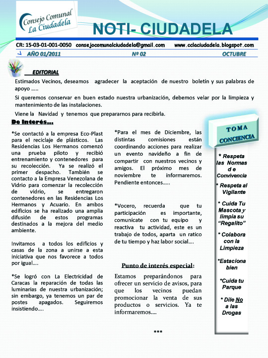 A continuación podrán ver la presentación que se realizó, durante los meses de enero y febrero de 2011, en todos los edificios y grupos de casas de la comunidad.